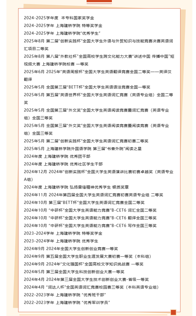 大一时,他埋头苦读英文原著、扎实备考四六级;大二起,积极投身学科竞赛与教学实践;大三阶段,明确出国深造方向,聚焦TESOL专业。这一选择,源于专业课程与实践经历的双重触动——《教育学》与《二语习得》激发了他对英语教学的兴趣,校外培训机构的助教工作则让他切身感受到教育的价值与乐趣。