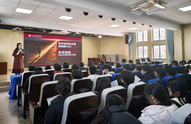 活动现场,陈苏婷院长围绕学校办学定位、综合实力、学科优势、育人成果及招生政策体系等核心内容,向景秀高级中学高二、高三学子作了全面系统的介绍,着重强调上海建桥学院“立德树人、因材施教”的人才培养定位与景秀高级中学的育人理念高度契合、同频共振。针对学子们普遍关切的专业选择方向、未来就业前景、升学发展路径等热点问题,陈院长结合往届优秀校友成长案例进行深度剖析,通过详实的数据、鲜活的事例逐一答疑解惑,帮助在场师生全方位、多角度、深层次了解学校,进一步增强了学子们对学校的认知度与报考意愿。