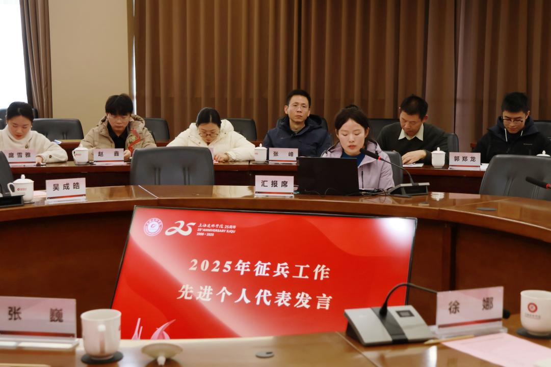 为深入贯彻国家征兵工作部署,全面总结 2025 年征兵工作成效,表彰先进典型,凝聚全校共识,进一步动员广大师生关心支持国防和军队建设,1 月 6 日上午 9 时,上海建桥学院 2025 年征兵工作总结暨表彰大会在行政楼 M612 隆重召开。校长助理、学生处处长、武装部部长张巍教授,学生处副处长、武装部副部长方梦瑶,各二级学院党委(党总支)副书记及征兵工作负责人出席会议。