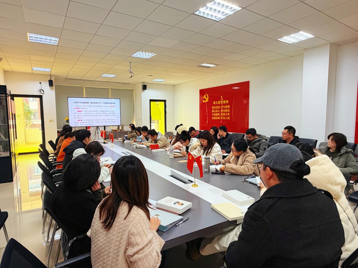 2026年1月9日下午,为进一步深化党的创新理论武装,提升党员教师政治素养,艺术设计学院特邀马克思主义学院副院长胡银平开展《习近平谈治国理政》第五卷专题辅导讲座。会议由教工党支部书记张慧慧主持,学院党委书记王丽佳、教工党支部副书记位霞丽及全体职工党员参加了此次学习。