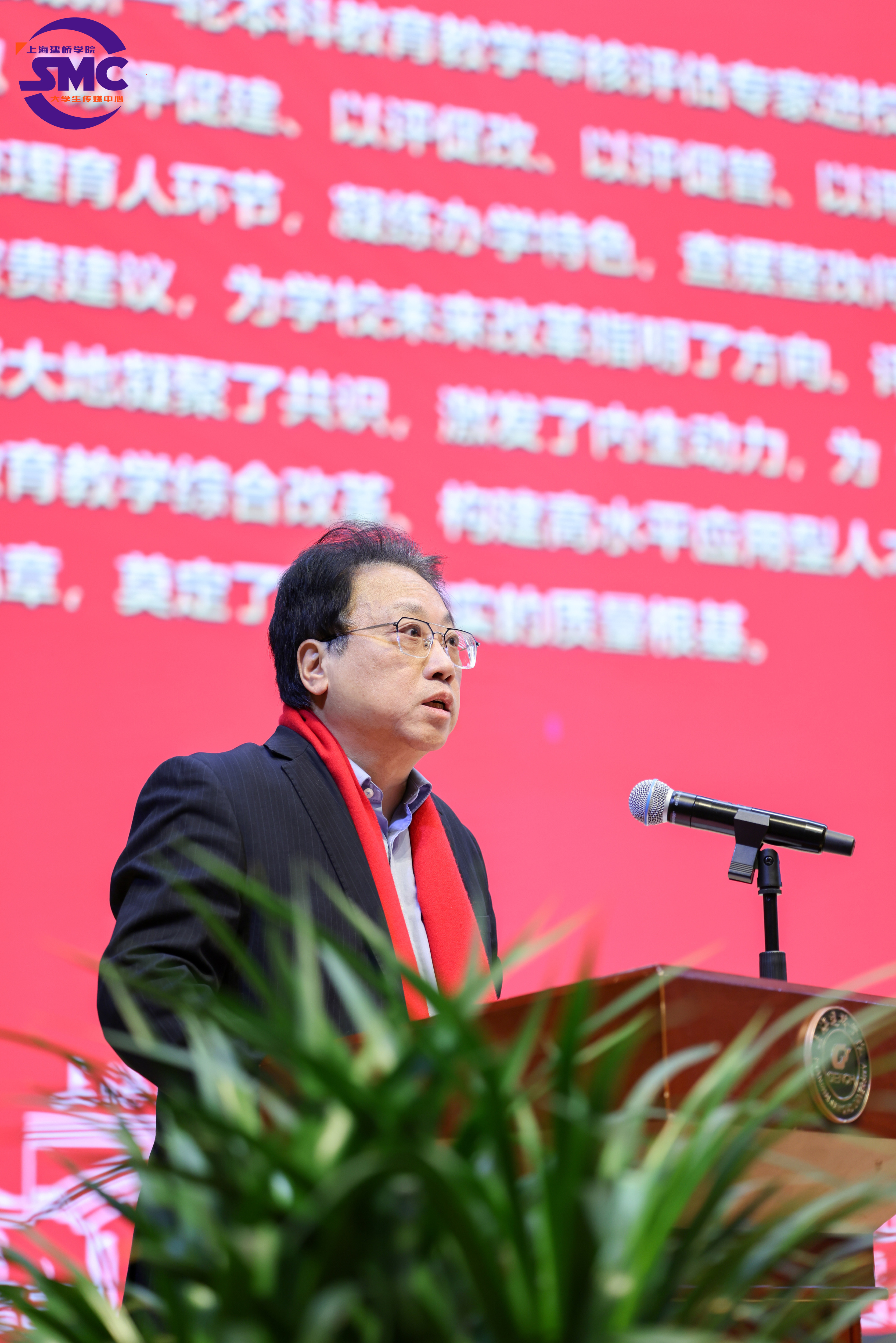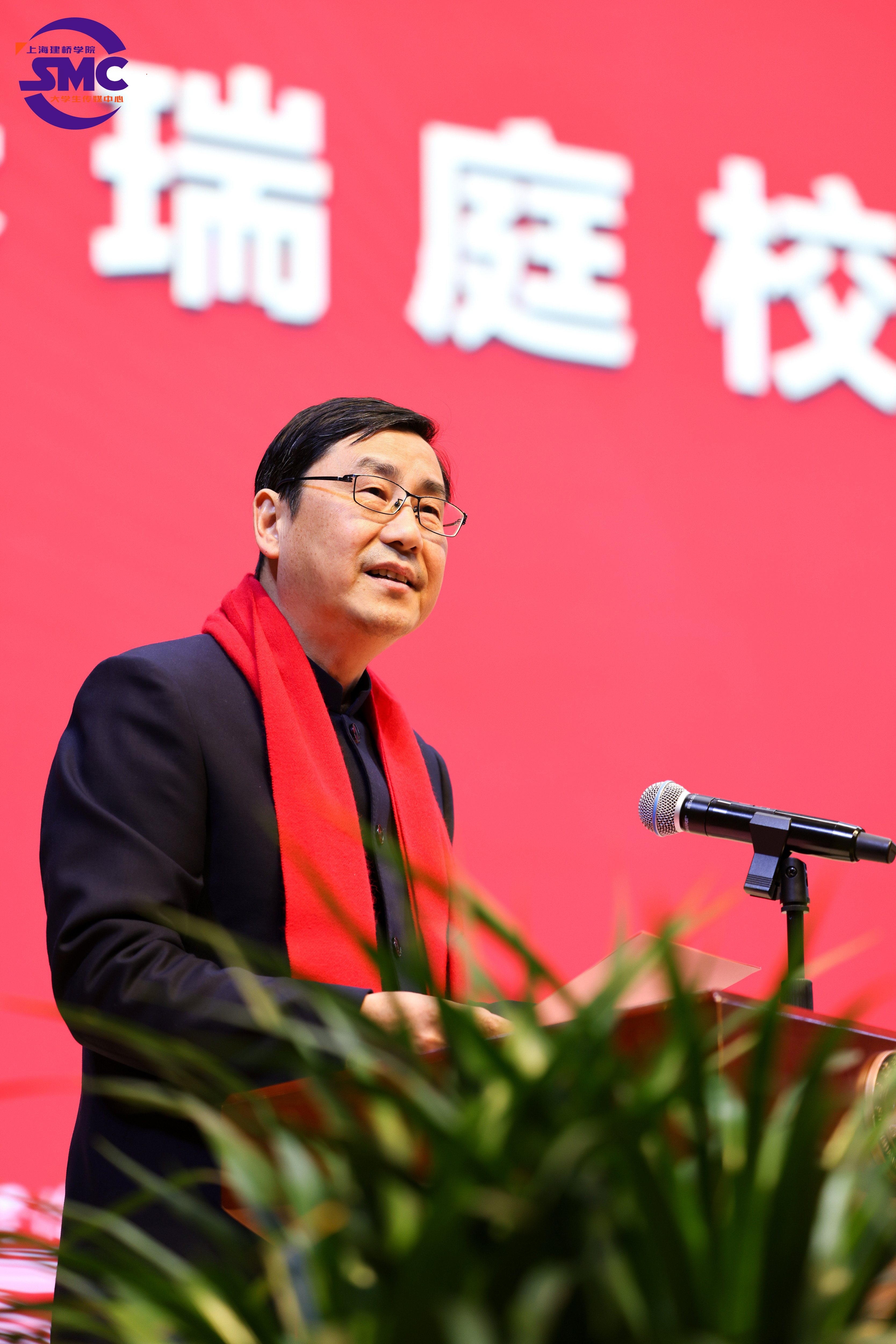 校长朱瑞庭致辞,向全体教职工致以诚挚感谢与新春祝福。他系统回顾了2025年学校在党建思政、立德树人、人才培养、内涵建设、学科发展、产教融合及科研创新等方面取得的突破性进展,强调学校始终坚守为党育人、为国育才的初心使命,坚定不移走高质量内涵式发展之路。他指出,2026年是“十五五”规划的开局之年,也是学校接续奋斗、再创辉煌的新起点。学校将坚持以高质量党的建设为引领,一体化推进教育发展、科技创新和人才培养。他号召全体教职工凝心聚力、笃行实干,朝着建设特色鲜明的应用型一流民办大学的目标勇毅前行,为以中国式现代化全面推进强国建设、民族复兴伟业贡献建桥力量。
