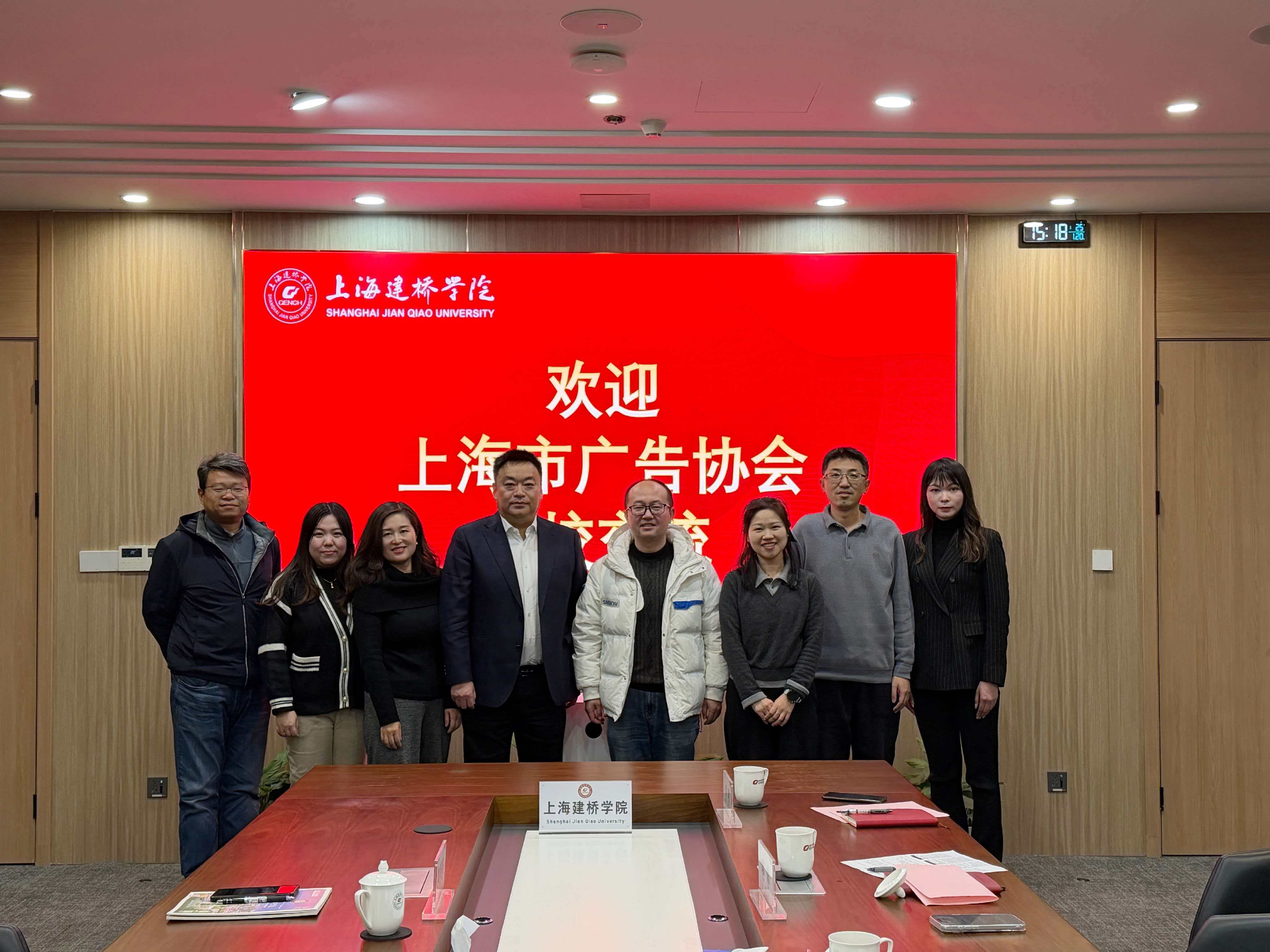 1月20日,上海市广告协会副会长高明一行到访上海建桥学院,与校方代表就产教融合、广告人才培养、课证融通、校企协同育人等议题进行深入交流。校长助理刘立华及产教融合促进中心、新闻传播学院、直播经济产业学院、教务处等相关单位负责人参与接待。