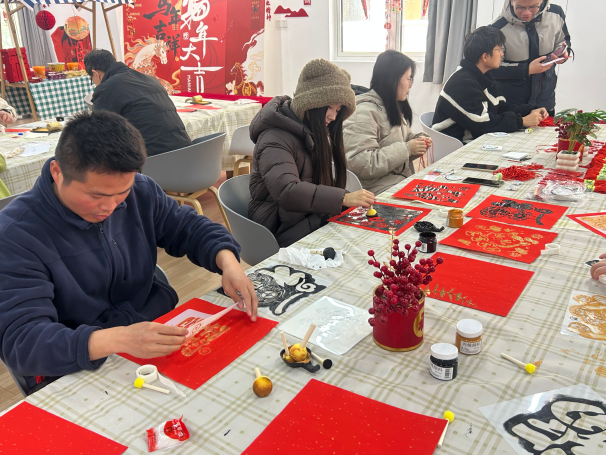 年味手作区则是打造新年美好的创意天地,烟火气十足。拓印红包、拓印福字、编织中国结等活动吸引学子们踊跃参与,大家亲手拓印出吉祥的马年图案,编织出火红的中国结,将新春美好祝福融入件件手作之中。大家专注创作、相互交流,在动手中体验传统手作乐趣,收获新年专属美好。