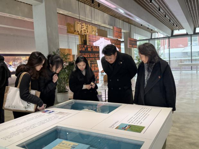 随后,师生们参观学习展厅。书稿陈列、全息投影、语音播放等形式,生动再现了于漪先生“一辈子做教师,一辈子学做教师”的教育人生。泛黄的备课笔记、工整的手迹,彰显着她对教学的极致追求;全息投影呈现的教育生涯场景,让师生们身临其境感受其“教文育人”的艺术。