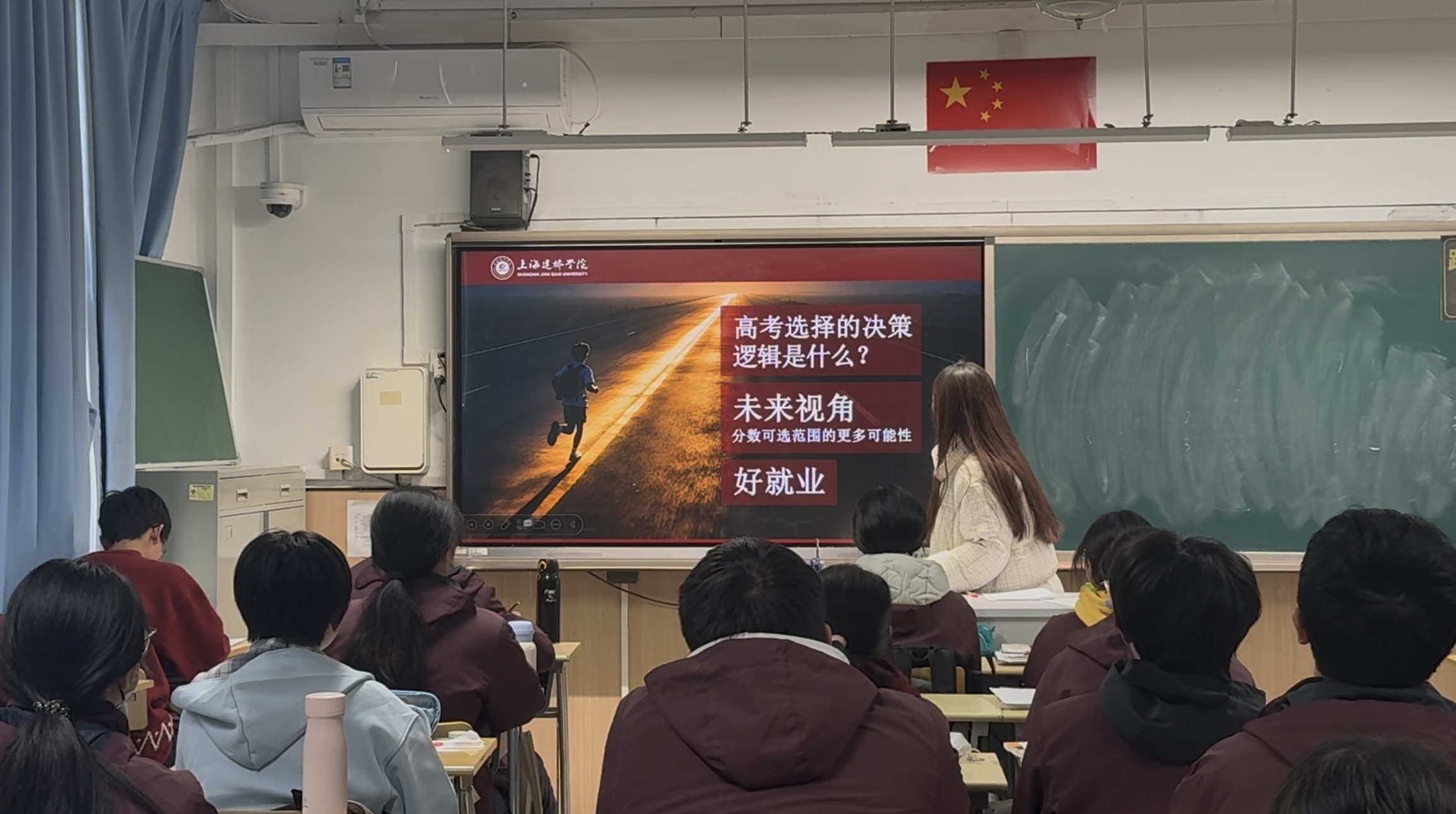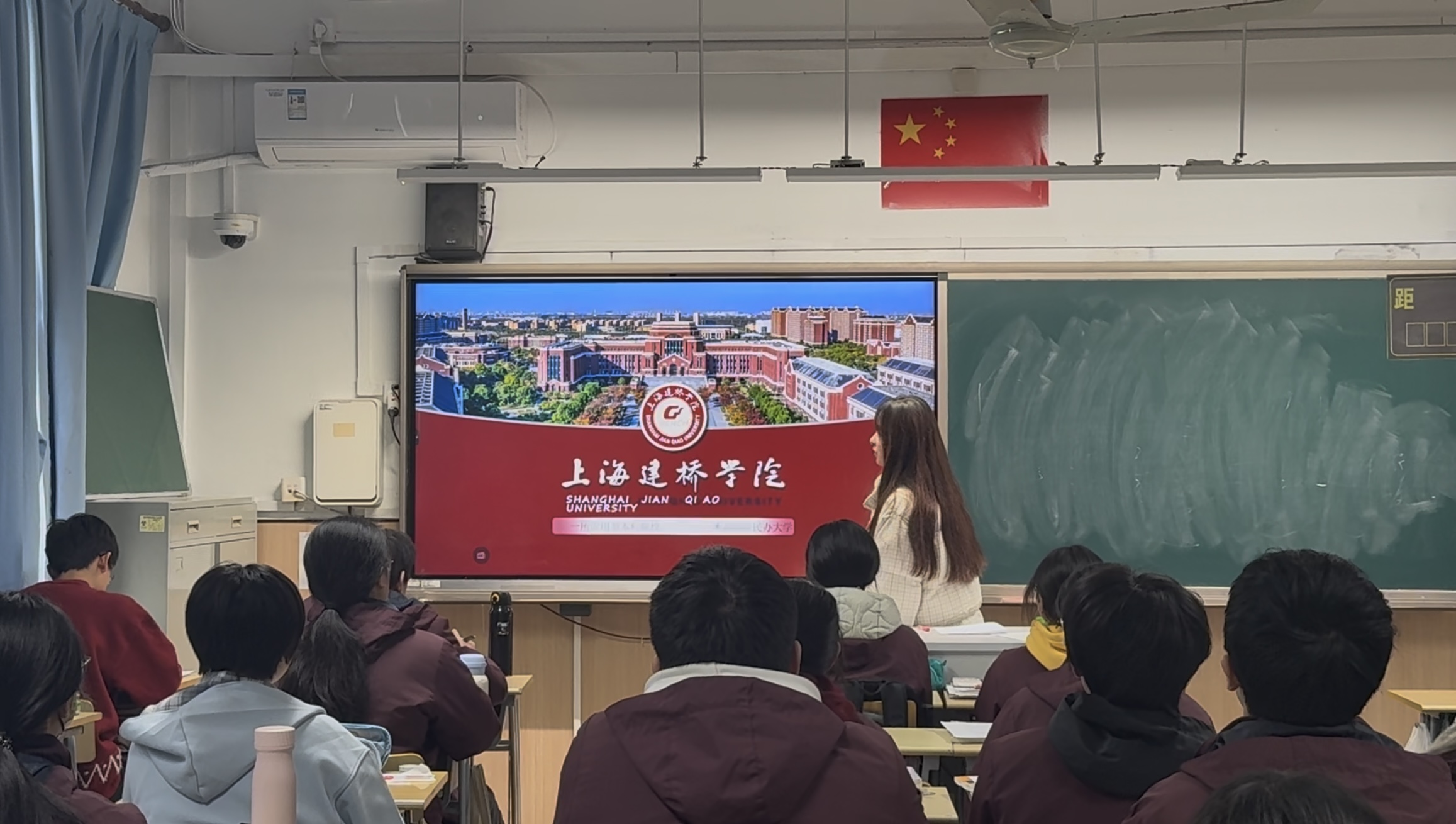 宣讲伊始,黄杰老师从高中育人视角出发,结合高三学子的备考状态,为同学们梳理春考的重要意义,引导大家理性规划升学方向,调整备考心态,缓解升学焦虑,为后续浦依韩的宣讲做好铺垫。随后,浦依韩接过分享的接力棒,从学校整体概况入手,详细介绍了上海建桥学院的区位优势、办学理念、校园文化及发展成果,让同学们对建桥学院有了全面的认知。