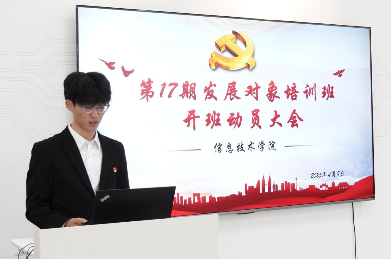 党委组织委员郭天慧作开班动员讲话。她代表学院党委向经过长期培养考察、从众多积极分子中脱颖而出的全体学员表示祝贺。她指出,进入发展对象培训班进行学习,意味着更高的政治标准和更严的党性要求。围绕“青春筑梦,信仰领航”主题,她提出四点希望:一是再问初心,从“向往”走向“信仰”,深刻反思入党动机,完成思想深处的“入党预检”;二是锤炼党性,把先锋模范作用融入日常,在小事中见态度,在平常中显担当;三是学思践悟,在知行合一中靠近真理,带着问题学、联系现实学、对照自身学;四是修身立德,守住纪律与诚信底线,以过硬作风扣好入党的“第一粒扣子”。