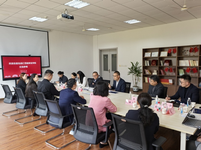 会议伊始,王苇书记代表珠宝学院对吉嘉名品汇一行的到来表示热烈欢迎,逐一介绍了参会教师代表,并详细阐述了学院的办学定位、发展概况与特色优势。书记指出,学院深耕珠宝全产业链人才培养,始终秉持“课证融通”“真实项目进课堂”的办学理念,创新构建“学院+产业学院+产业公司”三位一体育人模式,全力推动人才培养与行业产业需求无缝衔接。同时,依托珠宝艺术中心,学院已成功打造“教学-实践-服务”一体化的产教融合标杆,为校企深度合作奠定了坚实基础。最后,王苇书记表达了学院与吉嘉名品汇在人才培养、资源共享、成果转化等领域深化合作的意愿,期待双方携手共建校企协同育人新生态。