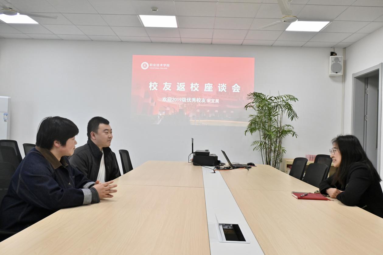 一段难忘的师生情,一场真挚的座谈。宋宜昊的故事,是师恩与奋斗的双向奔赴,更是职业技术学院赋能个体成长的最好见证。下一步,学院校友会与学工部门将以此为契机,持续搭建校友交流平台,让榜样之光点亮更多学子的成长之路,助力每一位建桥学子奔赴山海。