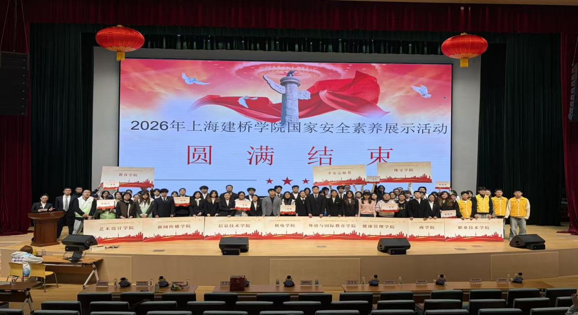 为深入学习贯彻总体国家安全观,积极响应“4.15”全民国家安全教育日号召,紧扣“统筹发展和安全 护航十五五新征程”主题,2026年4月17日下午,上海建桥学院国家安全素养展示活动校内选拔赛在雷锋礼堂顺利举办。本次比赛由学校后勤保卫处、学生处、校团委联合组织,各二级学院组成的11支学生队伍同台竞技,共同学习国家安全知识、展现青年责任担当。