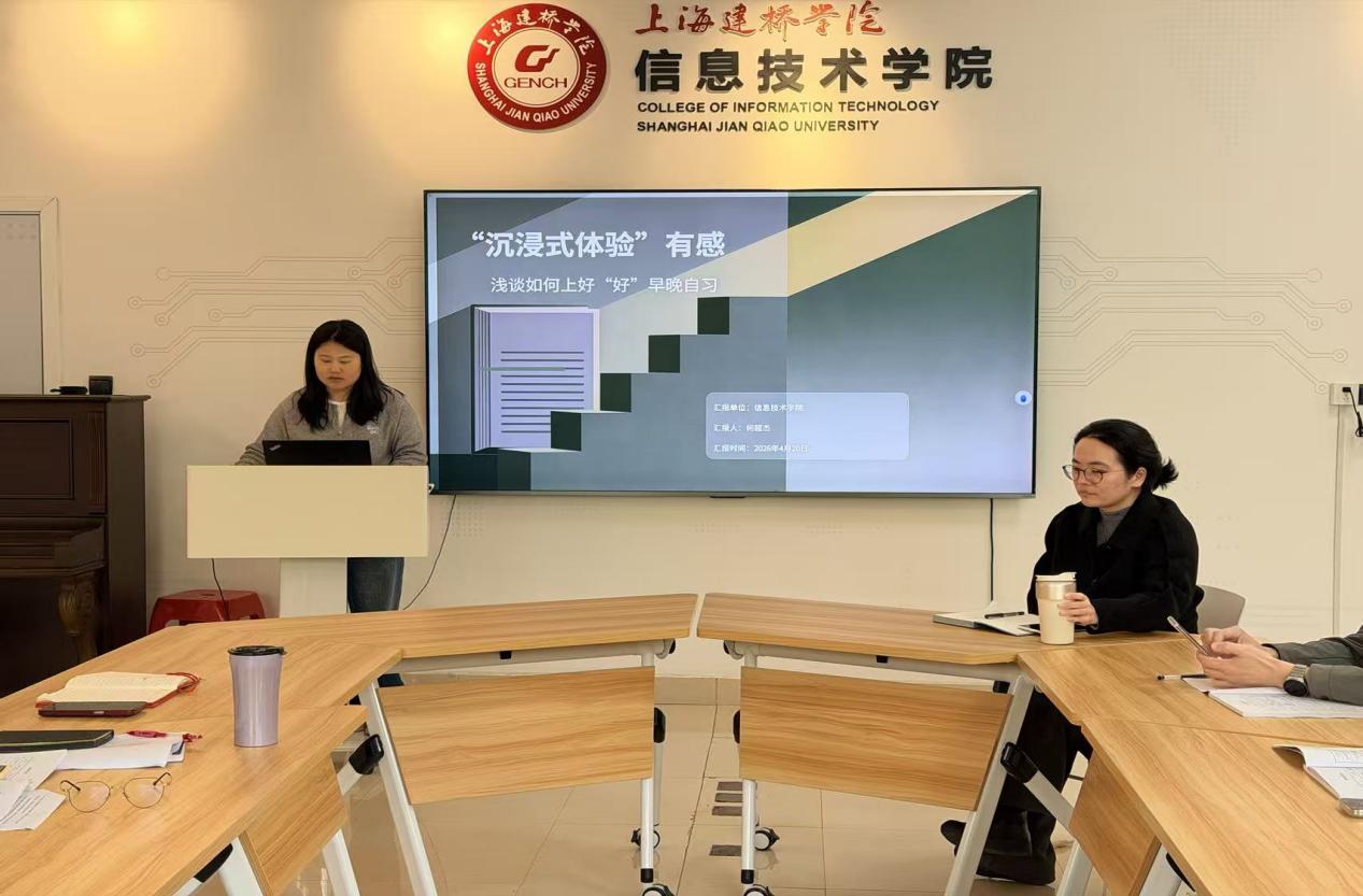 芳菲四月,信息技术学院以“复盘提质强担当,聚力赋能促提升”为主题开展学生工作系列专题分享会。本期聚焦学风建设专项行动,围绕“沉浸式课堂”构建与学风养成机制展开深入研讨。学院党委副书记徐娜主持会议,全体辅导员参会。