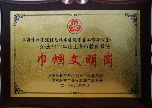 信息技术学院学工办荣获“2017年度上海市教育系统巾帼文明岗”称号