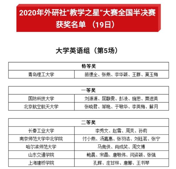 外国语学院大英部教师团队荣获2020年外研社“教学之星”大赛全国半决赛二等奖
