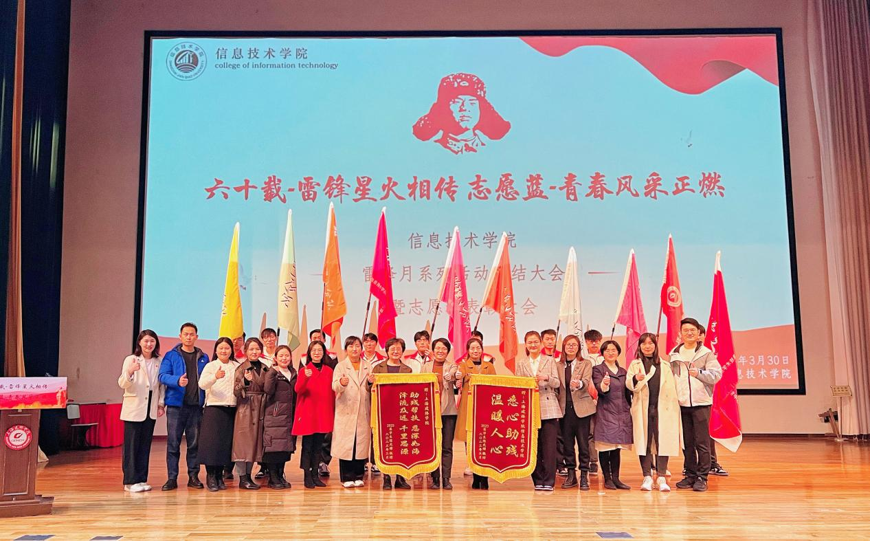 三月春风暖人心,雷锋精神伴我行。信息技术学院“六十载雷锋星火相传 志愿蓝青春风采正燃”雷锋月系列活动总结大会暨志愿者表彰大会于2023年3月30日下午在大礼堂顺利举行,本次大会由信息技术学院团委书记高智博老师主持。上海建桥学院学生处副处长、团委书记高雅,信息技术学院党委副书记徐娜、院长助理景志宏副教授、党委组织委员章连英,以及各年级辅导员老师和同学们参会。今年信息技术学院共有5名学子获得弘扬雷锋精神优秀学生“金质奖章”、32人获得“银质奖章”、93人获得“铜质奖章”。大会上,信息技术学院2022年度弘扬雷锋精神优秀学生“金质奖章”获得者沈琪芸,以“传承雷锋精神,弘扬时代新风”为主题领学雷锋精神。信息技术学院院长助理景志宏副教授和学院党委组织委员章连英老师为信息技术学院志愿者代表们颁发志愿者证书,志愿者代表潘文耀发言,并倡议作为青年一代应当毫无保留,奉献自我,坚定不移,始终如一的践行雷锋精神。校学生处副处长、团委书记高雅和学院党委副书记徐娜为雷锋工作站各位指导老师颁发聘书。学院坚守育人初心,助力困难学生成长成才。来自软工B19-3班的优秀学生陈光耀同学感恩于学校学院的关怀,赠送锦旗以表感