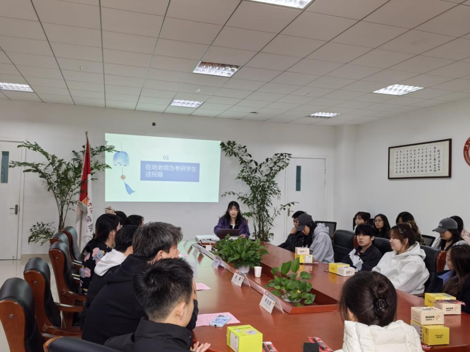 11月11日下午,2026届毕业生考研誓师大会在新闻传播学院楼219召开,本次大会由新闻传播学院学风建设负责人谢钰莹老师主持,出席大会的有新闻传播学院辅导员田红玲、赵鑫、李志鹏、马丹妮、陈宇凡老师。首先由谢钰莹老师介绍了新闻传播学院2026届毕业生考研报考情况,报考学生生源地、报考地主要集中于江浙沪皖。随后谢钰莹老师强调考风考纪教育,提出希望各位同学诚实守信、认真备考,诚信考试、诚信立人;放平心态、放下思想包袱、合理安排时间;预防诈骗、诚信应考、公平竞争。接着,由考研代表带领同学们进行宣誓:“用决心与意志、心血与汗水奏响成功的凯歌,不留下任何遗憾。”宣誓气势昂扬,振奋人心。随后,由辅导员陈宇凡老师送上对考研学子的祝福:身体是革命的本钱,希望大家调整好作息,一定要保证充足的睡眠,适当进行体育锻炼,保持良好的身心状态。接着由田红玲老师发表总结致辞,对26届考研同学提出三点希望:一是希望大家坚定信念,矢志不渝;二是希望大家科学备考,劳逸结合;三是希望大家调整心态,从容应战。把今天的誓言化为行动动力,预祝大家考试顺利,一战成硕。最后,谢钰莹老师宣布本次考研誓师大会圆满结束!此次考研誓师大会的成