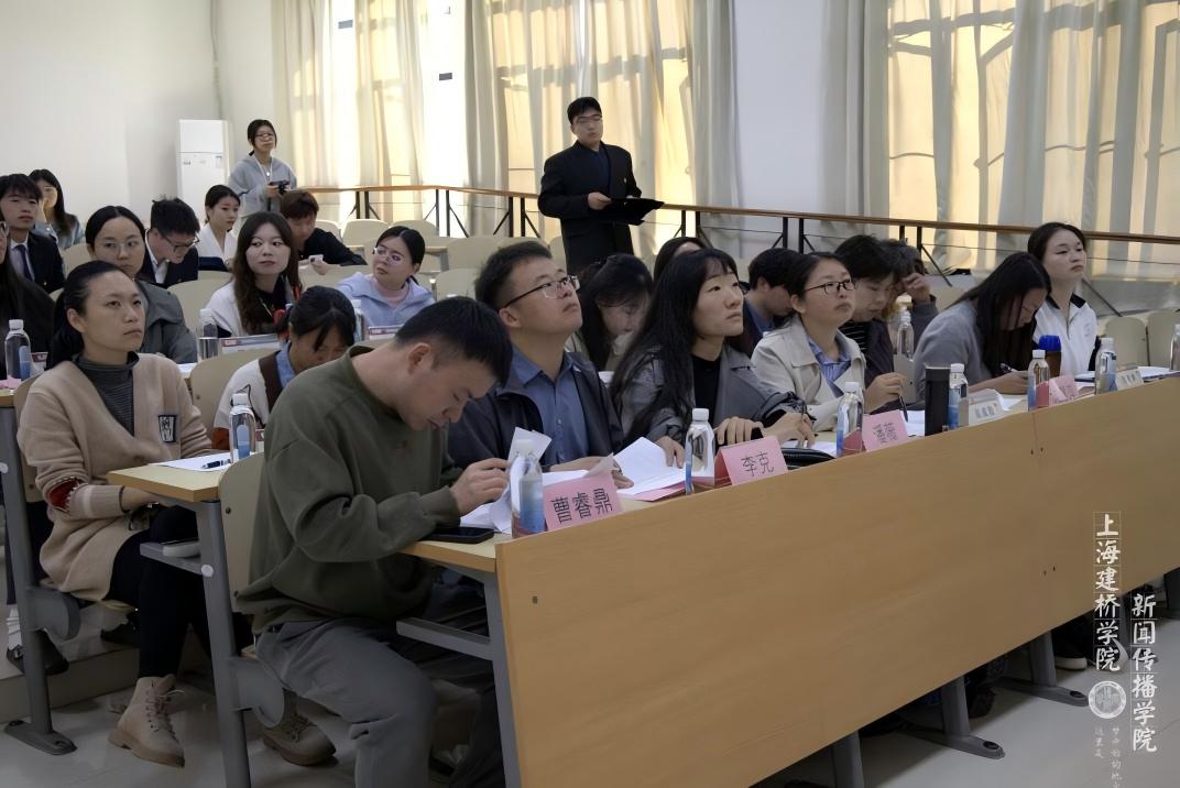 智能技术重构传播逻辑的浪潮下,口语传播如何锚定“人文性”内核?11月15日,由华东师范大学研究生院、上海广播电视台融媒体中心等联合主办的第十届口语传播学术论坛在沪开幕,本届论坛以“智启声界·言塑未来——智变时代的口语传播”为主题,汇聚学界与业界力量,探索智能时代口语传播的创新路径。上海建桥学院新闻系教师朱佳伟携三名学生参加此次论坛,并在“智能技术与口语传播声态重构”分论坛发表了学术演讲。图为新闻系师生会场外合影 上午8:30,论坛开幕式在华东师范大学闵行校区举行。开幕式上,上海广播电视台融媒体中心副主任周炜、华东师范大学传播学院党委书记朱文佳致辞,华东师范大学战略传播研究中心主任陈虹主持开幕式。图为本次论坛主旨发言环节 随后,来自学界和业界的专家学者依次进行主旨发言。本次主旨发言环节由华东师范大学传播学院副教授巩晓亮主持,北京师范大学周星教授、华东师范大学王群教授、浙江传媒学院姚争教授、中国传媒大学曾志华教授、中国人民大学高贵武教授、浙江传媒学院王一婷教授、陕西师范大学成越洋教授、上海师范大学易旭明教授、上海广播电视台首席主持人臧熹、王者荣耀官方解说马英凯等多位专家学者,围绕智能时代