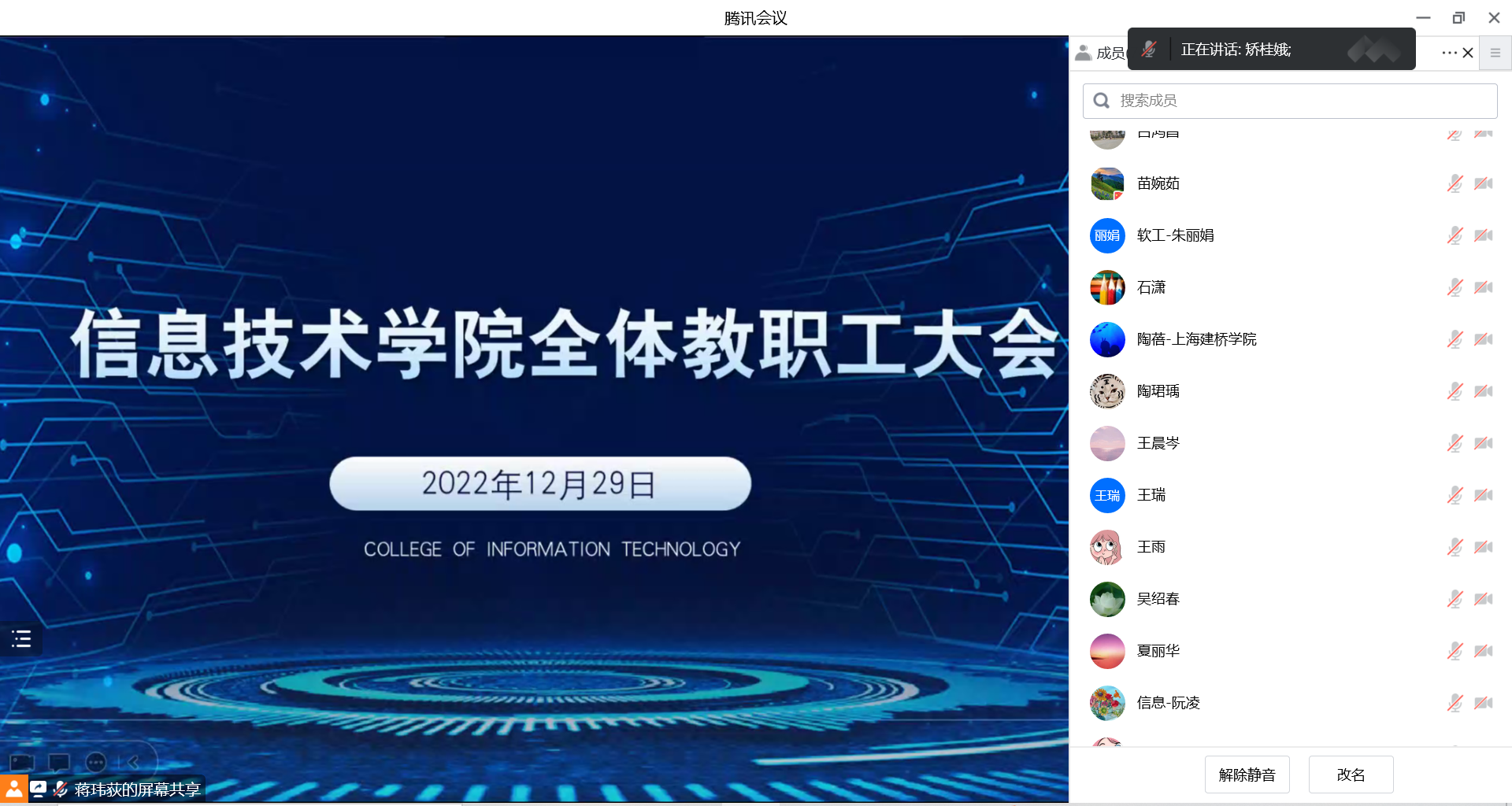 根据《中共上海建桥学院关于认真开好2022年度党员领导干部民主生活会的通知》要求,1月12日,信息技术学院召开2022年度党员领导干部民主生活会,副校长杨俊和、国际教育学院院长梁月泉受邀出席,信息技术学院院长张文俊、党委书记王晨岑、副院长矫桂娥、副书记徐娜、院长助理景志宏、院办主任蒋玮荻等参与会议,会议由王晨岑主持。信息技术学院把高质量开好民主生活会作为一项重要政治任务,为确保会议的质量和效果,学院班子集体研究并制定方案,组织理论学习研讨,广泛听取和征询意见,深入开展谈心谈话,认真撰写检视剖析材料,为民主生活会的召开打好了坚实基础。会初,王书记代表学院领导班子做了对照检查,重点从“六个带头”方面查摆了问题和不足,逐项对照查找突出问题,深刻剖析问题根源,明确努力方向和改进措施。随后,王书记带头作个人检视,其他班子成员逐个发言,内容紧扣民主生活会主题,坚持把自己摆进去、把职责摆进去、把工作摆进去,全面梳理检视问题,深刻剖析深层原因,明确具体整改方向。学院领导班子直奔主题、直面问题,认真开展严肃的批评和自我批评,坚持刀刃向内、自我革命,开展积极健康的思想斗争。各位领导针对会上提出的加强部门沟