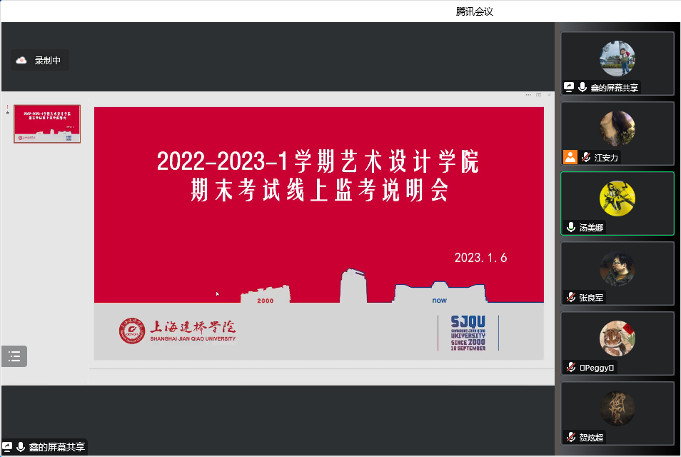 2023年1月6日19:00,艺术设计学院召开期末线上考试监考说明会,副院长汤美娜、各专业系主任、主考教师、监考教师及教学秘书参会。会上,汤美娜副院长介绍了本学期考试安排并详细解读了《艺术设计学院专业课程期末线上考试管理方案》。先从考前准备、考试过程和考试结束三个方面进行介绍。她指出,主考老师要在考试平台提前做好学生信息核对和试卷上传、考试测试等工作,提前告知学生考试注意事项,并对在线考试的有关问题进行了一一解答。汤副院长强调,主考老师、监考老师和考务人员应相互配合协调,对考试过程出现的突发情况应与主考和考务老师及时联系解决,确保学院2022-2023学年第一学期期末线上考试工作顺利进行。