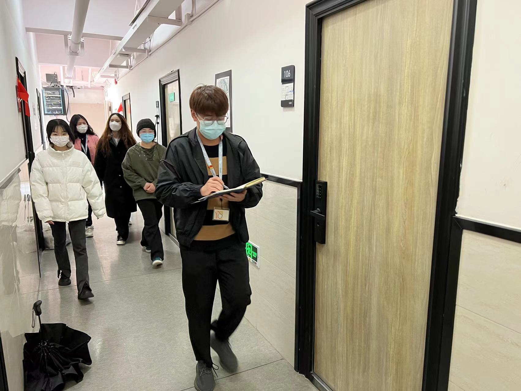 为进一步提高准封闭管理期间社区管理工作水平,增强留校学生疫情防护意识,4月2日下午,国际教育学院社区辅导员付柯嘉老师带领值班辅导员杨静、吕姗姗及优秀学生干部周思岑、张田田、黄新月走访学生寝室,学习社区防疫工作要点;排查寝室安全隐患;关心留校学生在寝室的学习、生活状况。付柯嘉表示,自学校进入准封闭管理以来,寝室成为留校学生的主要活动场所,确保社区防疫工作、安全工作落实到位,是留校学生学习生活安全有序开展的前提,因此社区防疫工作、寝室安全等问题应加倍重视。走访过程中,他细心地为大家讲解社区防疫工作的要点、难点;寝室排查中应重点关注的安全隐患;并指导大家如何采取有效的沟通方式提醒留校学生做好自我管理、养成良好生活习惯、保证线上学习效果。通过此次走访,大家对准封闭管理期间社区工作的重点难点有了进一步认识,对留校学生在寝的学习、生活状态有了更直观的了解和掌握。学院将继续做好准封闭管理期间社区的管理工作,为留校学生提供安全有序的生活环境,营造积极向上的学习氛围。(供稿:国际教育学院)付柯嘉老师为大家讲解社区防疫工作要点