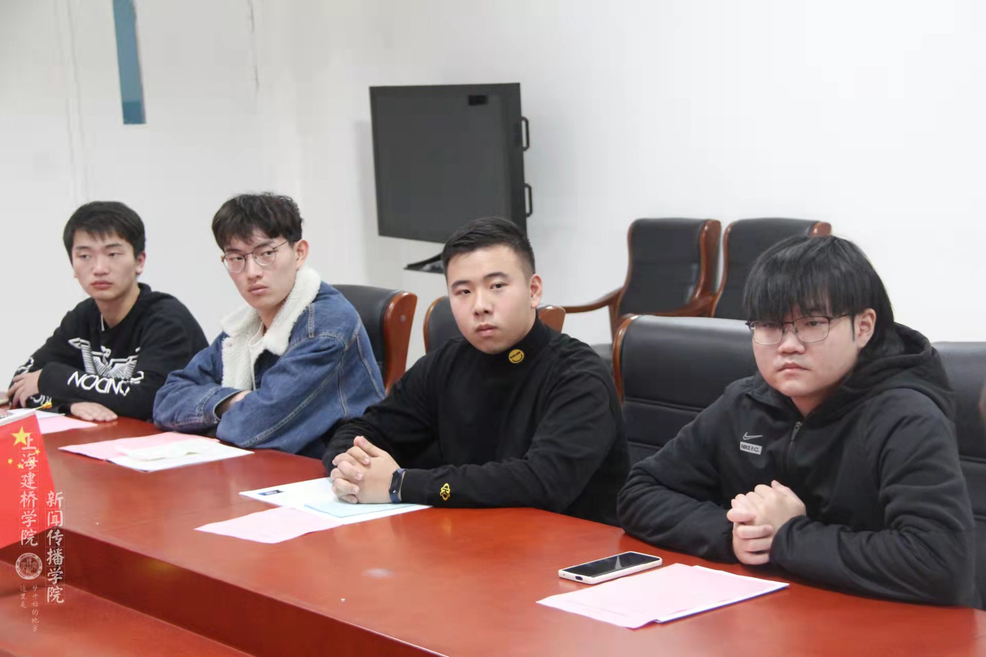 新闻传播学院召开2021年新团员发展会议11月22日下午,新闻传播学院分团委组织部于新闻传播学院219召开2021年新团员发展会议。新闻传播学院分团委书记李志鹏老师、分团委组织部部长阎文卿、陈心怡以及潘泳堤、孙俊杰、龚佳豪、陈宇劼4位拟发展新团员与对应的介绍人出席本次会议。首先,分团委组织部部长阎文卿宣布了2021年新发展团员预备人选。新发展团员对自己的入团志愿书依次进行了宣读,向团组织表达了强烈的入团意愿。四位介绍人分别介绍了新发展团员相关情况,对他们的工作能力、思想道德及学习态度等方面作出了正面的评价,对他们过往的不足之处提出建议,希望他们加以改进。其次,各位介绍人举手表决通过新闻传播学院2021拟发展团员人选名单,所有表决人员全票通过并对此热烈鼓掌,确定潘泳堤、孙俊杰、龚佳豪、陈宇劼四位成为中国共产主义青年团团员。随后,组织部部长阎文卿组织全体团员面对团旗宣誓。接着,新团员依次进行表态,分享个人入团感受。潘泳堤同学表示加入共青团后,他会用一颗宽容的心、坚定的心去面对困难。孙俊杰同学表示会继续发扬贡献、友爱、共同进步的精神,践行好感恩、回报、爱心、责任的校训。龚佳豪同学表示会结合习