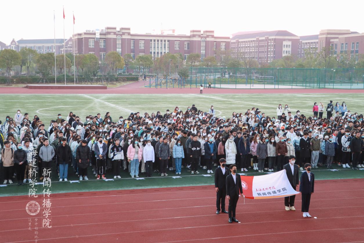 新闻传播学院升旗仪式暨“铭记党史,立正学风”主题教育活动顺利举行11月24日清晨,新闻传播学院升旗仪式暨“铭记党史,立正学风”主题教育活动于校体育场顺利举行。参加此次仪式的有武装部刘伟山老师,新闻传播学院党委副书记吴成皓老师,各班辅导员以及19、20、21级全体学生。本次升旗仪式由传播学B20-2班朱敏耀同学主持。清晨6:20,同学们迎着朝阳集合完毕,以饱满的热情、昂扬的意志迎接即将开始的升旗仪式。活动伊始,朱敏耀同学通过对百年光辉历程的展述告诉同学们,在这个高速发展的新时代,祖国面临着更多的竞争和挑战。同学们作为生长在红旗下幸福的一代,是祖国未来的希望,也是刚从地平线上升起的朝阳,要牢记自身的重任,铭记历史,立正学风。紧接着,本次活动伴随着庄严雄壮的国歌声正式开始。鲜艳的五星红旗冉冉升起,全体师生奏唱国歌、行注目礼,整个操场显得格外庄严肃穆。随后,来自新闻学B19-3班的张润泽作为学生代表上台发言。她以如何促进班级的班风学风建设为主题。从建设班级学风的重要性,形成良好班风的益处等展开分析。她以新冠疫情的反复爆发对我们的学习、生活所造成的影响为例,提醒同学们要提高学习积极性。此外,建设