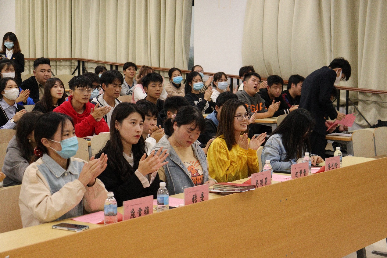 新闻传播学院召开2021-2022学年第一学期社长大会11月3日下午,新闻传播学院于学院楼308召开2021-2022学年第一学期社长大会。本次会议由新闻传播学院分团委社团管理部干事朱以薇主持,新闻传播学院分团委书记李志鹏,分团委学生会副主席张学丽、聂晖砫,分团委社团管理部部长周铨桦以及全体干事,各社团社长以及社员代表参与本次会议。会议伊始,全体起立奏唱中华人民共和国国歌。国歌结束后,主持人朱以薇首先介绍了本次会议的出席人员和各项议程内容。紧接着,各社团社长对2021-2022学年第一学期的社团活动开展情况、近期社团存在的问题、今后目标等内容依次进行汇报。其中7352工作室社长谢景淇回顾往期开展的活动,包括帮助教务处为老师拍摄上海民办高校教师教学技能大赛课程录制、筹办上海建桥学院劳动教育主题月开幕式、走进上海宝尊电子商务公司参观学习等。最后她表示在接下来的工作中将会和社员们共同努力,砥砺前行,争取将社团变得更好。随后,晴天公益社提出了四个后期目标规划,分别为校外活动、社团角、公众号、志愿基础并依次进行介绍,旨在提高社团的整体质量。在这个过程中,以法学社为代表的很多社团也提出了问题,比如
