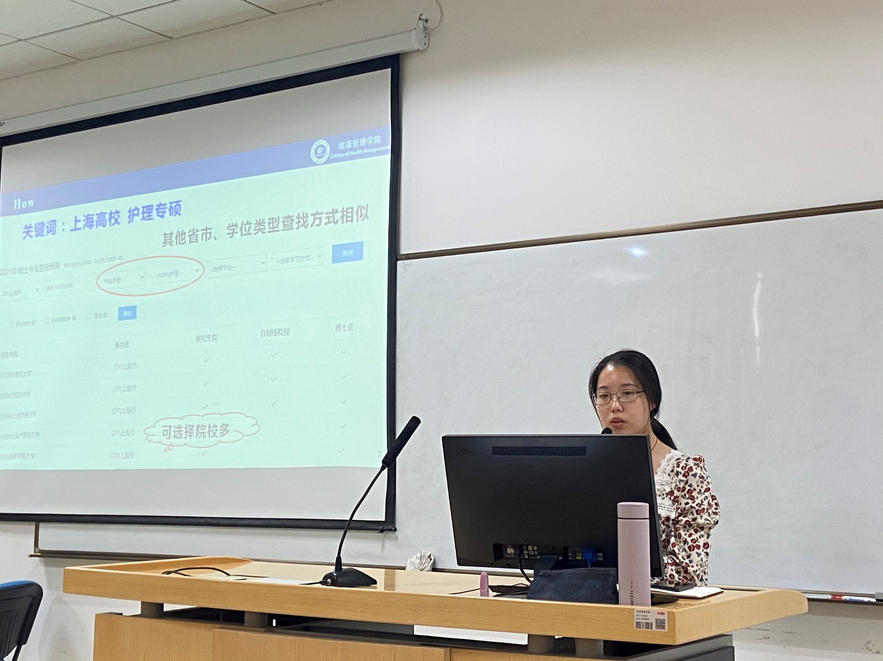 为进一步提高健康管理学院学生的考研热情,明确考研目标,掌握考研技巧,了解更多考研信息,健康管理学院于6月16日举办护理学专业考研分享交流会,交流会邀请曹佳音、黄海英老师为同学们分享考研经验。会上,曹佳音讲解了考研的目的、考研的科目以及怎样准备考研,重点介绍了专业学位硕士与学术学位硕士之间的差别以及如何从繁杂的网络中捕捉最权威最有效的信息,建议通过研招网、各大高校官方网站等了解考研信息。并从考研护理专业角度讲解了考研的科目,建议同学们有针对性地早作准备,制定好各科目复习进度安排。黄海英从考研前期准备、课程复习和职业规划三方面进行了讲解,分享考研心得体会、传授宝贵的学习经验,同时从护理学专业展开职业规划解读,帮助同学们明确学习方向及以后的就业目标。