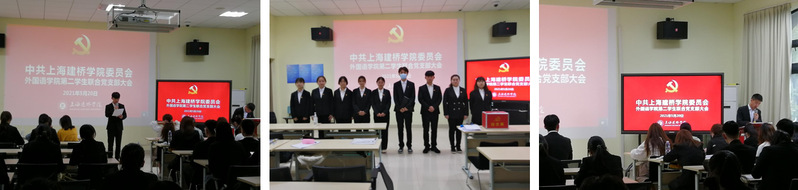 为适应新形势要求,进一步加强学校党委发展党员工作,经预审同意,中共上海建桥学院外国语学院委员会第一、第二学生联合党支部分别于5月19日和5月20日召开支部大会,大会分别由学生党支部书记赵磊、易贤恒主持。根据上级党组织对发展党员工作的要求,接收预备党员会议严格按照党组织程序进行,经过各发展对象逐一汇报、入党联系人评价与建议、正式党员投票表决等环节,大会最终同意接收顾春煜、杨林熙、杨奕雯等九位同学为中共预备党员。第二学生联合党支部书记易贤恒表示:“今年是建党一百周年,对于一个政党正好是风华正茂的阶段。新加入党组织的同志要坚持学习理论知识,提高思想政治水平,时刻用党员的标准来要求自己,自觉履行党员的义务,发挥先锋模范作用,不断地去反思,从而进一步完善自己。”支部大会的召开,不仅壮大了学生党员队伍,而且增强了支部的凝聚力,让每一位党员明确了自己入党的意义与肩负的使命。支部成员也都表示会在今后的工作中努力践行党的光荣传统和优良作风,提升党性修养,弘扬奉献精神。