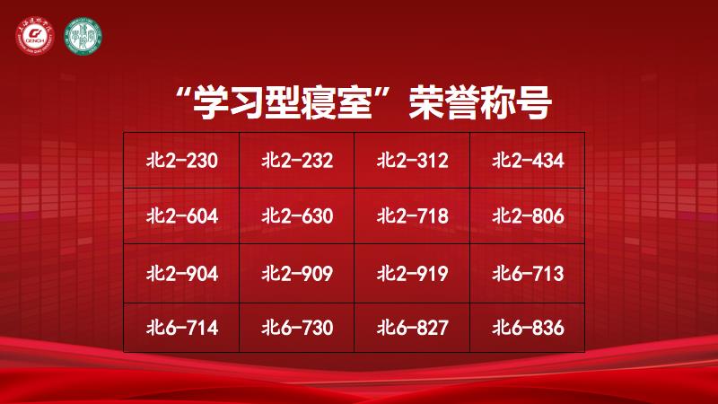 “学习型寝室”作为我院社区工作站特色项目,今年不同于往年,是和学院分团委学习生活部合办,所有的申请和评定工作于11月底已全部结束,并在学院官网进行了公示。12月10日,我院在学院楼演播厅对此次获奖寝室及先进个人进行了表彰。本次“学习型寝室”的评选严格按照要求,主要还是考察寝室内所有成员的学习情况。本次获得表彰的学习型寝室共16间,每间寝室1人被评定为优秀成员,以下为表彰名单:来自北2-312的王丹美作为优秀成员代表进行讲话,她在发言中说到:“寝室是我们自己的家,是一个当我们累了时可以依靠的港湾。我们相信勤奋的汗水总会换来甘甜的果实。没有完美的个人,只有完美的团队,这是我们的寝室文化,我们彼此包容,彼此理解,彼此帮助,互相尊重彼此的成果,营造一个和谐、充满爱的寝室。”本次大会的开展旨在让同学们向身边的榜样学习,以优秀同学为榜样,积极进取、刻苦学习、勤奋踏实、不断提高自身文化素养,营造一个温馨、学习氛围浓郁的寝室,培养同学们互动学习、有效学习的能力,加强寝室同学的联系,互帮互助,共同进步,继续努力争取下一学年学习型寝室的评选。