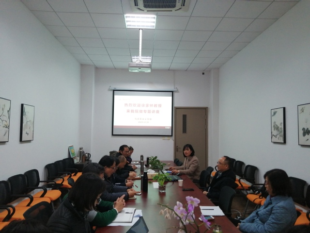 12月10日,马院邀请华东政法大学徐家林教授做科研提升辅导报告,徐家林是华东政法大学马克思主义学院教授,博士生导师,复旦大学法学博士、上海大学社会学博士后,华东政法大学马克思主义理论学科带头人、校学术委员会委员,法治政党与国家治理研究所所长,上海市思想政治理论课教学指导委员会委员,中国伦理学会政治伦理学专业委员会常务理事。上海市模范教师、优秀思政课教师。在《马克思主义研究》、《当时世界与社会主义》、《马克思主义与现实》等期刊发表文章80余篇,其中CSSCI等核心期刊论文40多篇,多篇被人大报刊复印资料等全文转载。报告会由宋艳华院长主持,马院全体教师参加。徐教授主要从项目申请、单位平台和论文写作三个方面做了报告,徐教授指出:项目申报时必须要经过多次修改,形式上符合申报要求,大胆申报;至于教师的单位平台问题可以适当变通,他山之玉可以攻石;论文写作时一定要题目新颖、有问题意识,明确解决的问题,逻辑严密,符合学科话语体系。徐教授的报告让教师们耳目一新,充分体现出了老法师的治学严谨和科研成功的来之不易,为后辈科研者树立了榜样。