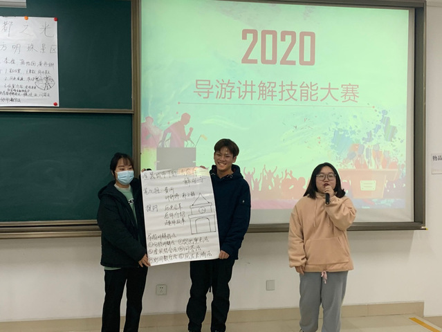12月10日,职业技术学院旅游管理专业导游讲解技能大赛举行,2019级旅游管理专业学生参加,专业相关教师担任评委点评,投票评出了2项三等奖,1项一等奖。比赛获得了较好的反响,同学们表现出了极大的参与热情,比赛参照导游服务导游要求,整个赛项分为自我介绍、自选导游讲解和地方规定景点导游讲解等环节。参赛学生在赛前精心制作了手绘海报,用心撰写了导游词,比赛前多次的解说排练。在比赛过程中运用课程知识,采用各种导游讲解技能的方法,模拟真实场景,锻炼专业技能。在当天正式比赛现场,全班同学投票评选出了比赛结果。据了解,职业技术学院定位为应用技术型院校,全院所有专业将培养应用技术型人才作为专业人才培养目标,积极推进教学改革,课程教学注重实践性、操作性,通过还原真实场景,学以致用,增强学生专业动手技能和实战经验,培养临场应变的能力,有效推动课程教学方式的创新,对接产业需求,培养“毕业即就业、上岗即上手”的应用型合格人才。人才培养学生学以致用及临场应变等方面的能力。