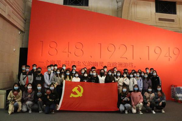 为深入学习贯彻习近平新时代中国特色社会主义思想,把握新时代的历史使命。10月25日,商学院党委委员俞海燕、徐光硕老师,商学院学生党建中心指导老师李夌以及商学院学生党建中心成员到上海历史博物馆参观学习,开展红色学习活动。上海历史博物馆是中西结合的建筑风格,有着浓厚的历史感。博物馆以展馆陈列为主,全面呈现了上海从史前时期开始,直至1949年新中国成立6000多年的沧桑变迁。博物馆遵循着“以城市史为脉络,以革命史为重点”的原则,通过四层楼的展览设“序厅”、“古代上海”和“近代上海”三个常设展厅,博物馆通过大量珍贵的文献、文物、图片和影像等将数千年的历史进程展现在观众眼前。通过参观学习,大家不仅对上海的历史有了更深入地了解,也感受到了上海数千年来“海纳百川、追求卓越、开明睿智、大气谦和”的城市精神。上海作为近代中国历史中最具代表性的城市,与中国共产党的发展息息相关。为纪念《共产党宣言》首版中文全译在上海出版100周年,上海历史博物馆推出了“从建党到建国红色文物史料展”。展览中有一面墙以翻阅书籍的样式,展示了各种语言版本的《共产党宣言》,吸引了众多同学的目光,大家纷纷驻足,用心品味老一辈革命家、