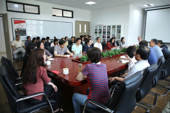 5月31日,外国语学院创新创业工作交流会在二教402室举行,学校教务处副处长周荣玲,甲骨文公司中国教育事业部总监郑雨应邀参加。外国语学院院长吕乐教授、党总支书记杨大亮教授、各系部室主任及全体创新创业项目负责人出席。会议由学院党总支副书记、双创中心主任李雷老师主持。