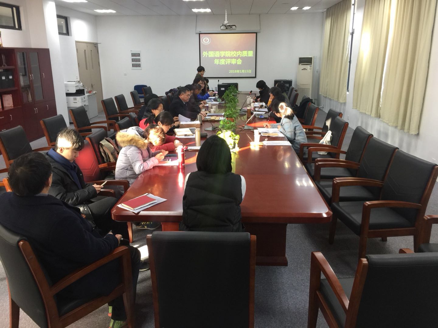 1月15日上午,由规划与质量办公室陈洁主任带领的校检查组一行8人莅临我院就外国语学院在2017年度质量管理体系和运行的具体情况进行了内部审核,外国语学院全体院领导和中层系部主任出席了内审会。检查组首先听取了外国语学院吕乐院长、辅导员和学生工作负责人杨大亮总支书记、教学口负责人王海燕副院长的简要汇报,与此同时,检查组当场查看了外国语学院各相关部门准备的质量文件、部门工作计划等。汇报结束后,检查组请外国语学院人员临时回避并对外院工作进行了汇总与评估。在当天上午与外国语学院面对面的反馈中,陈洁主任代表检查组对外国语学院一年来在规划和质量工作方面所做的工作给予了高度肯定,检查组评价大致如下:外国语学院与全体中层干部集体到场接受内审,阵容整齐、精神高昂,充分说明外国语学院在思想上高度重视学校提出的ISO9001质量计划,“以人为本、德育为先、依法治校、严格管理”的建桥质量管理新理念已初步入脑入心,学院上下措施较为得力,凝聚力、执行力较强;检查组认为此次外国语学院对2017年度学校党委、行政计划、卓越建桥计划执行力度强,质量管理体系文件较为齐全,在梳理、归纳和分析自行风险点方面数据详实,平时工作中