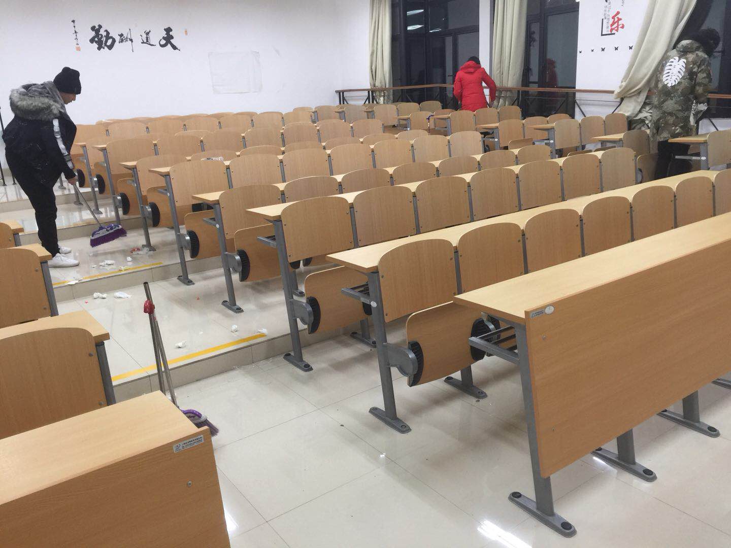 我校学习雷锋,培养雷锋式的大学生通过一系列文明工程让在校大学生能够根据大学生成长规律分年级分阶段来实现学雷锋实践活动的阶段性和递进性的有机统一。机电学院更是我校首批践行文明工程之一的文明修身工作的先行者。考试周的来临,全校各年级学子都进入了最后复习冲刺阶段,紧张的复习冲刺和流水式进入考场考试,导致公共教学楼的卫生情况无法得到很好的保障。见此情况,机电学院30名入党积极分子在学院辅导员的随口一句倡议下,一呼全部应,于周二晚自习从分散在图书馆、学院楼和寝室楼的入党积极分子,三三两两组合速度三教公共教学楼,用最快的时间把机电学院14间自习室打扫干净,随后又匆忙投入紧张的复习中。针对我院学生来说,学雷锋活动从来都不是一句口号,而是通过从身边事做起,从社会主义核心价值观落细落小入手,践行校训,弘扬雷锋服务人民、助人为乐的奉献精神。同时,对于入党积极分子来说也是在学习“两学一做”过程中所要求的“学,是基础;做,是关键”的重要体现。另外,考试周在即,也倡议所有学子,清洁环境从自身做起,美丽建桥的守护,需要你我他携手进行。图为机电学院入党积极分子正在打扫考场图为打扫过后整洁干净的教室