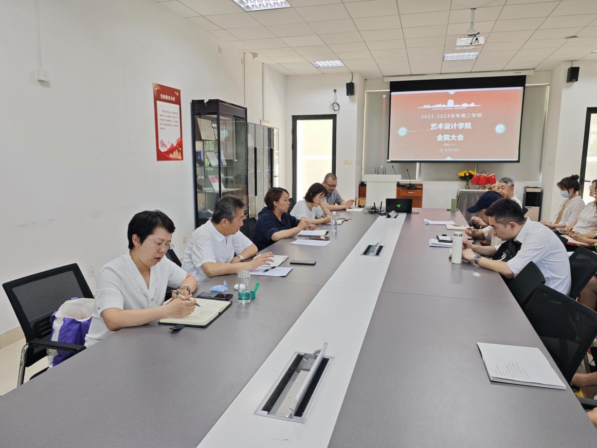 7月4日下午,艺术设计学院召开全院大会,会议由周智明书记主持,汤美娜副院长、王丽佳副书记及全体教职工共同参会。会上,汤美娜副院长就学期末的各项教学工作展开详细说明。她表示,本学期即将结束,教师要有序做好课程材料归档、毕业设计归档、教材审核等工作,确保各项材料的规范性和完整性。此外,教师要制定暑期学习计划,规划科研活动,提升教学和科研能力,同时要加强与企业之间的沟通,了解行业动态和企业需求,紧跟市场发展。王丽佳副书记表示,要继续关注未就业学生,帮助他们克服就业难题,顺利进入职场。此外,辅导员要配合好系主任,学期末完成企业走访任务,在走访过程中要深入了解企业需求与期望,探索与企业的合作方式,并与企业建立长期联系,为未来的合作打下基础。王清明主任针对教职工暑期体检、疗休养、离沪信息登记等工作进行说明。最后,周智明书记宣布了学院党政联系会讨论决定:由王峙清老师担任视觉传达设计系副系主任,主持全系工作。对在毕业生优秀作品展撤展后,附属品的整理中,勤奋工作的王秋生老师提出表扬。为庆祝中华人民共和国成立75周年,学院面向全院师生发起“奋斗新征程 建桥新起航——献礼中华人民共和国成立75周年师生美术与