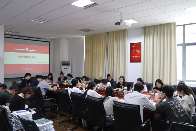 6月17日下午14:40,商学院在8305会议室召开辅导员例会。会议由商学院党委副书记俞海燕主持,全体辅导员均出席了此次会议,共同就学院近期工作进行深入研讨和部署。会议伊始,党委副书记俞海燕首先针对诚信教育工作进行了详细的安排,要求辅导员做好诚信教育的主体班会,同时针对期末考试做好诚信考试的教育工作;之后也针对学生评教工作进行了详细的安排,要求辅导员落实好学生评教工作;然后,详细安排了毕业生毕业典礼的相关工作,要求辅导员做好毕业典礼工作的安排,做好毕业学生的人文关怀;最后,也强调了学生马上要进入到的考试周,务必落实好考试周的相关工作,积极做好考前的相关准备工作,以考促学,提升班级学风建设。学院横向负责人首先沟通了最近的横向工作,各个辅导员强化沟通和交流。本次例会使商学院辅导员们对明确了近期工作的相关要求,明确了近期工作的核心是期末考试期间的相关工作,会后,辅导员依据会议内容同步展开工作的同时也进一步提升工作效率,及时进行相关工作落实。(通讯员:张灿宇)