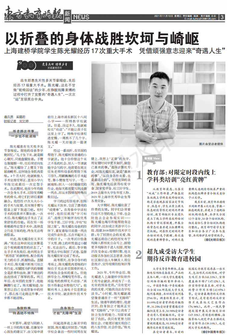 东方教育时报:以折叠的身体战胜坎坷与崎岖