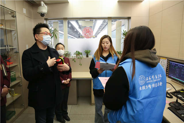 地铁防疫播音,讲述青春故事……学雷锋日上海高校纷纷行动2021-03-05青年青年报·青春上海见习记者 陈泳均 记者 刘昕璐助人为乐、无私奉献的雷锋精神,年年岁岁都激励着无数中国青年志愿者。今天在第58个学雷锋纪念日之际,申城高校纷纷开展形式多样的志愿活动。地铁站担当防疫提示播音员、在公益跑中学习雷锋精神、颁发“雷锋奖”讲述青春故事等活动精彩纷呈。 上海杉达学院 地铁播音员正式上岗了!“乘客们,大家好,我是来自杉达学院的学生志愿者,今天由我来为大家播报防疫事项。乘客们请注意,为阻断疫情传播,乘坐地铁进站请佩戴口罩,配合进站体温筛查……”今天上午,正好排到班的上海杉达学院外语学院大三学生杨航和小伙伴有幸首批走入9号线顾唐路地铁站车控室,展开防疫提示播报服务。“我曾在校广播台工作,走进车控室,看到广播设备时还是觉得特别开心,自己也很珍惜为乘客播报的志愿经历。”原来,在第58个学雷锋纪念日当天,上海杉达学院“镇地校”党建共建签约仪式暨上海地铁9号线志愿者队伍成立仪式举行。三方将在开展公共文化、志愿服务、社会实践、社区治理等方面的项目合作,在共建过程中提高中青年干部的队伍素质和工作水平,