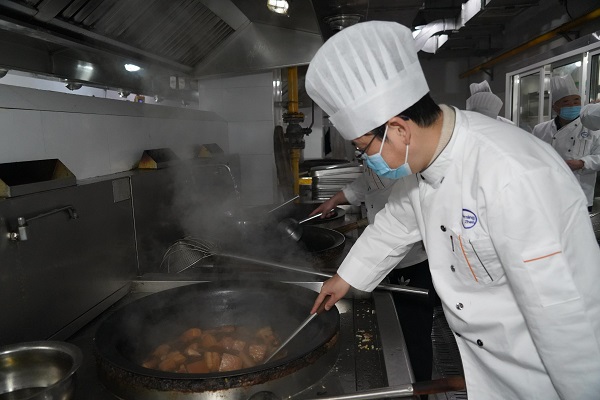 来源:上观新闻作者:徐瑞哲还给每个人一大堆零食,包括牛奶、坚果甚至海底捞自热火锅,还有500元“压岁钱”,以及防疫包等。百来人留校过年,2万多人“云吃菜”!尽管大年初五了,但沪上60多所高校数万留校学子的口福还是享不尽,最长可以连吃7天或18顿免费过年餐……在上海建桥学院,新春加餐烹饪全程视频直播,比留校人数多200倍的返乡学子同时在线收看,同学们纷纷打出弹幕,隔屏分享“吃播”—— “一会儿就可以吃到啦,哈哈哈”“我想学校的菜了,我懂了,你是想让我们回校”……解放日报·上观新闻记者了解到,在食宿无忧、好吃好住的背后,不仅仅有多年不回老家的大菜师傅,连校长、书记也从“掌门人”变成“掌勺人”,陪学生们过好这个特殊的寒假、特别的年。【半数年份大菜师傅留校保“年味”】“让不回家过年的留校学生从每一餐中感受到学校里的‘年味’。”在东华大学,留校中国学生达279人,包括42名少数民族学子,还有留沪的留学生90余人。延安路以及松江大学园区两大校区的第一食堂是主力“留校餐厅”,其他各食堂也根据自身情况为岁末年初到食堂就餐的学生提供免费水饺、小炒等。杨红飞,头戴高帽、配上口罩,胸前校徽之下是004的编号