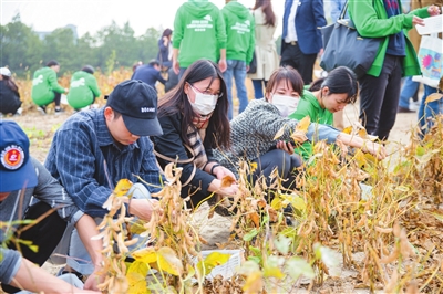 新生必修“种田”课 农活合格方毕业学生们在劳动教育实践基地采摘大豆。 □奚丽君 摄 本报讯(首席记者符佳)撸起袖管弯下腰,跟着“农民伯伯老师”学习种植油菜、采摘大豆、播种蚕豆……11月7日,上海建桥学院100余亩劳动教育实践基地正式启用,百余名大一新生“下田劳作”,感受播种与收获的喜悦。当日,该校正式开启《劳动教育》课程,并以这种特别的方式庆祝建校20周年。 《劳动教育》必修课是上海建桥学院于2020学年面向大一新生开设的素质拓展必修课程,2个学分共计32课时。这块新启用的大学生劳动教育实践基地,正是《劳动教育》必修课的农业生产实践平台,学生可在此参与农作物播种、养护、采收等生产过程,学习劳动工具的使用方法。 “劳动不是走走过场、摆摆POSE,我们要让大学生真正动手实践、出力流汗,以生产劳动来磨练意志、锤炼品格。”上海建桥学院校长朱瑞庭认为,现在很多大学生“不知稼穑之难”,只有亲身参与了生产劳动,在田地里流下辛勤的汗水,他们才能真正感受到“一粥一饭来之不易”“盘中餐粒粒皆辛苦”,从而培养劳动感情,养成劳动习惯,珍惜劳动成果,热爱劳动人民。 上海建桥学院的劳动必修课,不仅仅是给学
