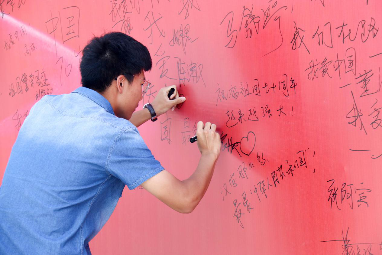 爱国就要大声说出来,活动中,校领导和师生们在表白墙上写下了对祖国的祝福,表达了对走入新时代的祖国母亲的真挚热爱,展现了新时代、新征程的大学生的骄傲和自豪。