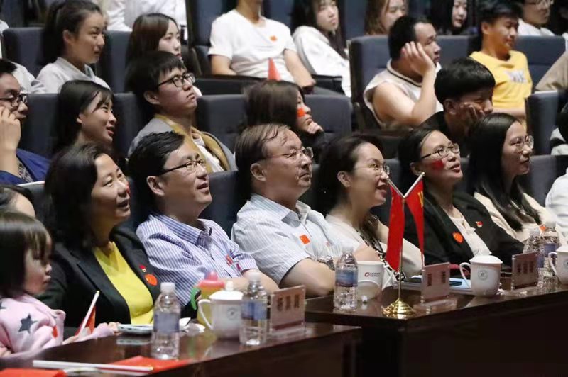 校领导朱瑞庭、江彦桥、夏雨、陈伟,学校“不忘初心、牢记使命”主题教育领导小组办公室成员及留校师生在大礼堂集中观看庆祝中华人民共和国成立70周年大会、阅兵式直播,共同为祖国庆生,为祖国自豪,为祖国祝福。直播结束后,校领导分成两组与师生交流座谈,就观看庆祝大会展开了热烈的交流讨论。