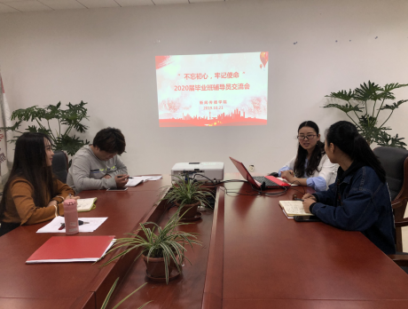 10月21日下午,新闻传播学院召开“不忘初心、牢记使命”2020届毕业班辅导员交流会。党总支副书记吴成皓出席,相关辅导员参会。