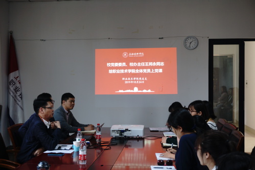 10月24日下午,职业技术学院主题教育党委联络人、校党委委员、学校办公室主任王邦永在职业技术学院讲授“不忘初心、牢记使命”主题教育专题党课,全体党员干部参加。