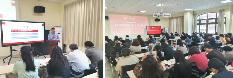 朱瑞庭校长从“习近平关于教育的重要论述” “习近平寄语广大青年学子”“担时代使命、做时代新人”三个方面展开此次专题党课的讲述。首先,他以习近平总书记关于教育的重要论述为主线,从关于教育的一个根本性问题、两个大计、三个传播和塑造、四大主体、五个抓、六个方面下功夫、七个第一、八个学会、九个坚持等方面,讲述教师要立德树人、以德立身、以德立学、以德施教,要遵守《新时代高校教师职业行为十项准则》。随后,他讲到,自党的十八大以来,习近平总书记多次到高校考察并与师生座谈,多次给青年学生、大学毕业生、志愿者回信,对广大青年学子提出了殷切的期望,从“扣好人生第一粒扣子”到“青年强则国家强”,习近平总书记一次次对广大青年学子进行鼓励、鞭策和激励。最后,他总结强调,要切实提高政治站位,形成体系学、带着问题学、掌握方法学;要落实教育优先发展战略,加快建设教育强国;要落实立德树人根本任务;要把教师队伍建设作为基础工作;要坚持把改革作为根本动力;要毫不动摇加强党对教育工作的全面领导。