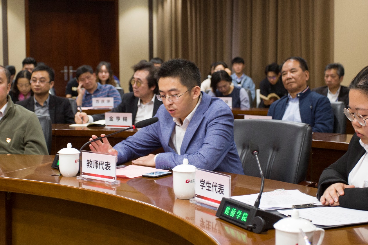 文明工程先行单位机电学院吴玉平作为教师代表发言。他表示,作为教师要以身作则、为人师表,从小事做起、从“三礼十无”做起。在教学方面,做到认真教学、努力向新时代“四有”好老师靠拢;在教书方面,认真备课,开设有创新性、有高见性、有挑战度的课程;在育人方面,积极将思政融入课堂;在课堂管理方面,做到严格管理、分类指导。