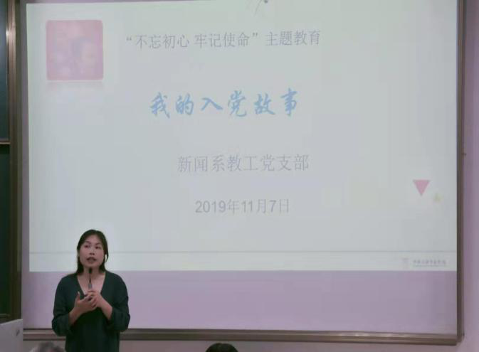 11月7日晚,新闻传播学院新闻秘书学生党支部党员、新闻系2019新生200余人齐集一堂,聆听新闻系教工党支部五位老师的“入党故事”。