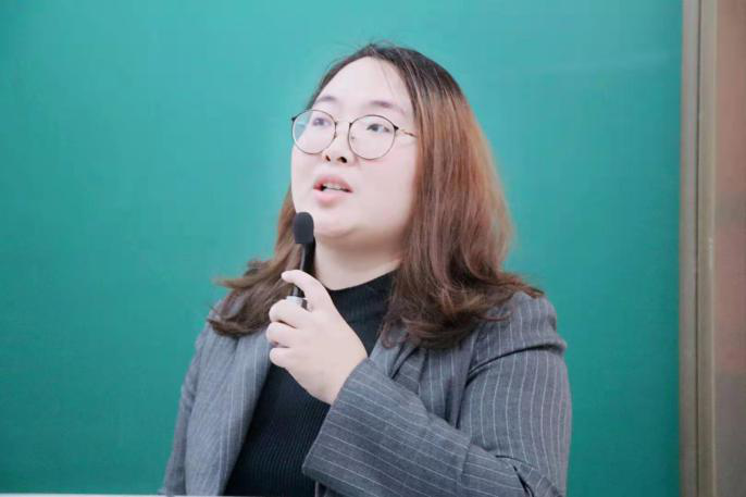 刘燕用自己大学时期的照片带领大家走进自己的大学生活和入党历程,从学习、生活等方面讲述了新闻系学生如何充实自己的大学生活。她也从集体、个人、他人三个方面阐述了入党要具备的条件。