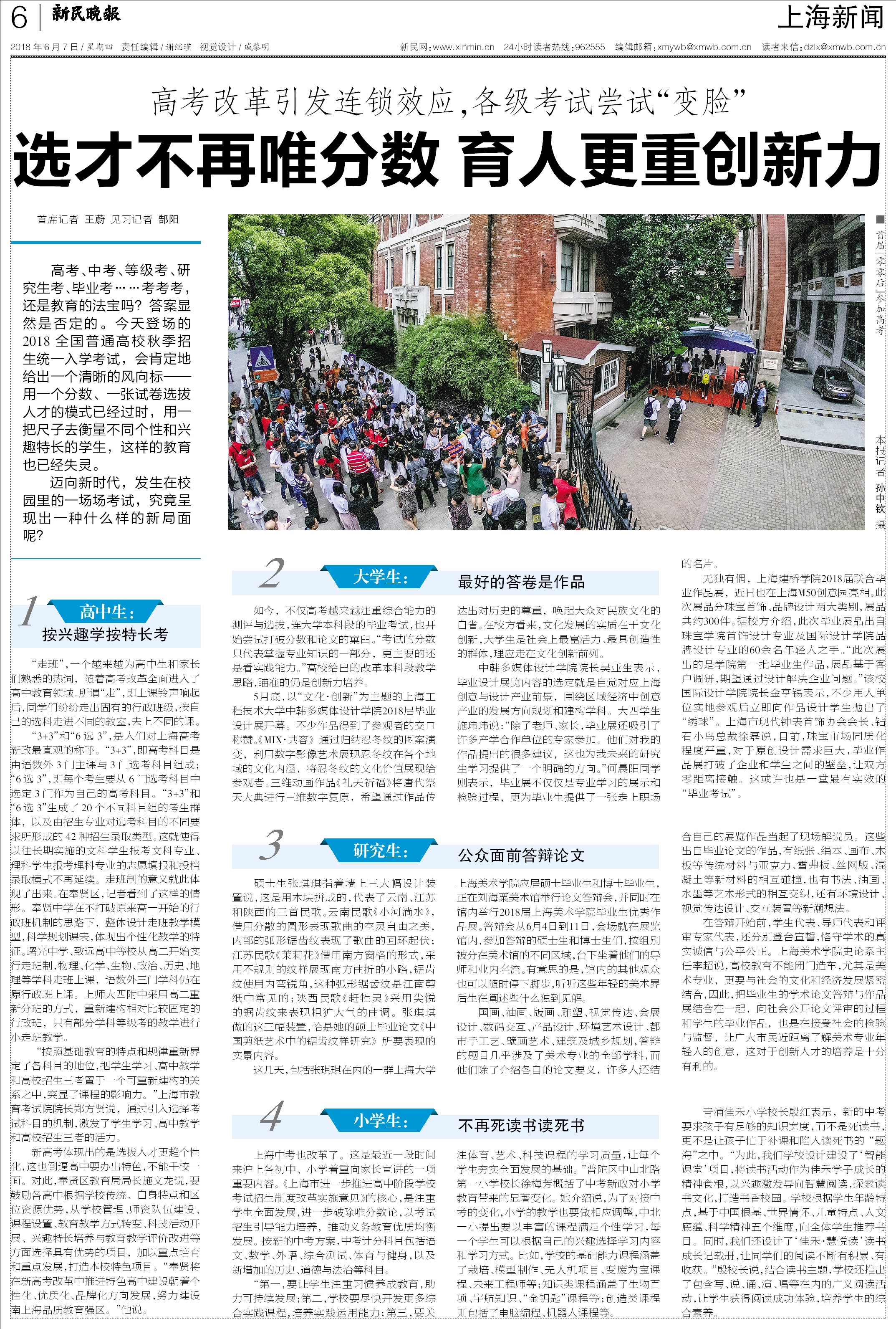新民晚报:高考将至,这些考试新局面你可知?上海:选才不再唯分数,育人更重创新力!