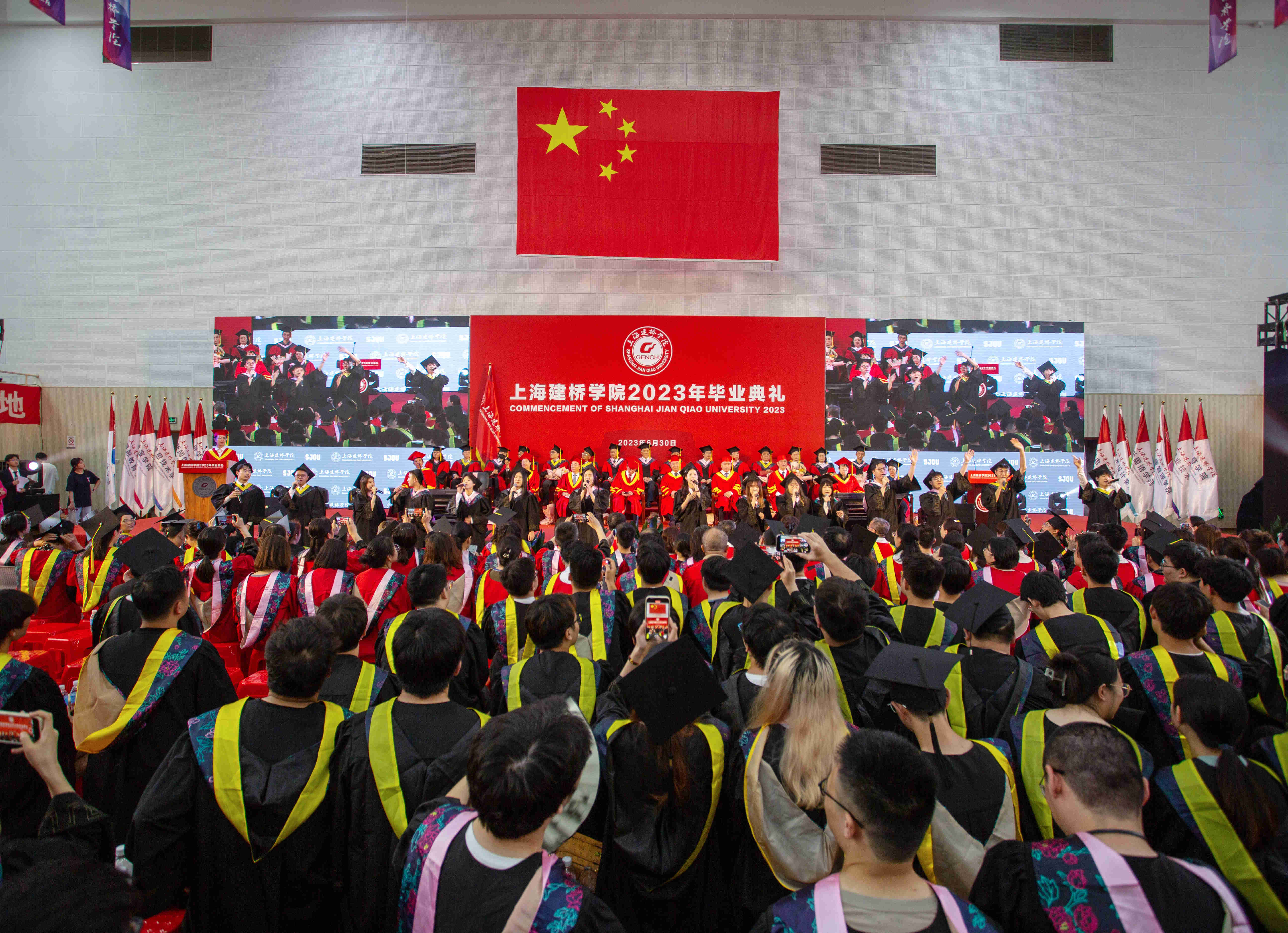 ■本报记者符佳 日前,上海建桥学院举行2023届毕业典礼,6000多名毕业生开启人生的新航程。主席台上,一...